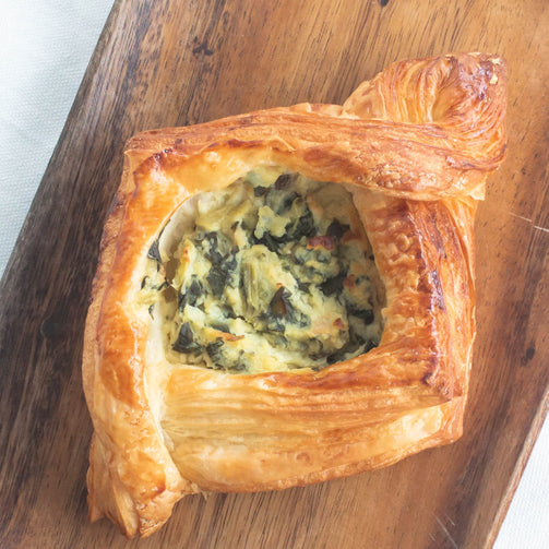 Savory danish pastry with a cheddar, spinach, and egg filling.