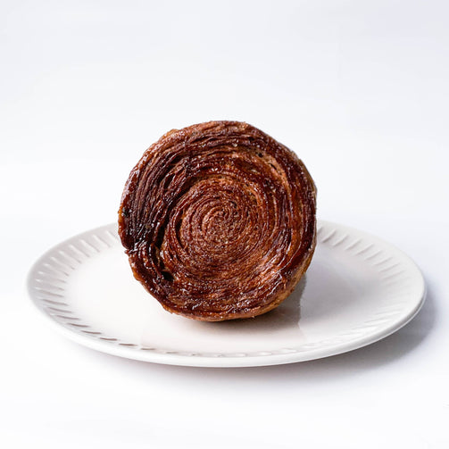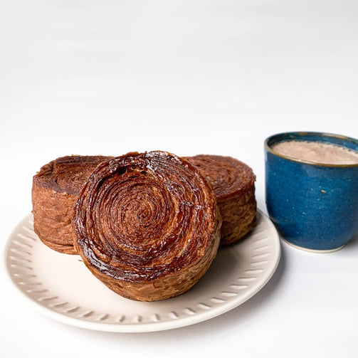 Our buttery and flaky kouign amann is now also chocolatey! Made with chocolate dough generously coated with salted caramel sugar.